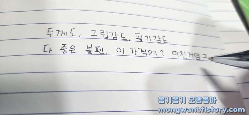 필기감 역시.... 저는 놀랐습니다. 그렇게 미끄러지지도 않고 딱 좋게 써지면서 그립감도 좋습니다.