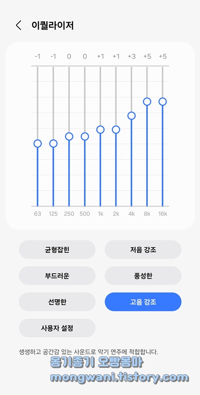 이퀄라이저를 조금 조절해주니까 듣기 편하네요.